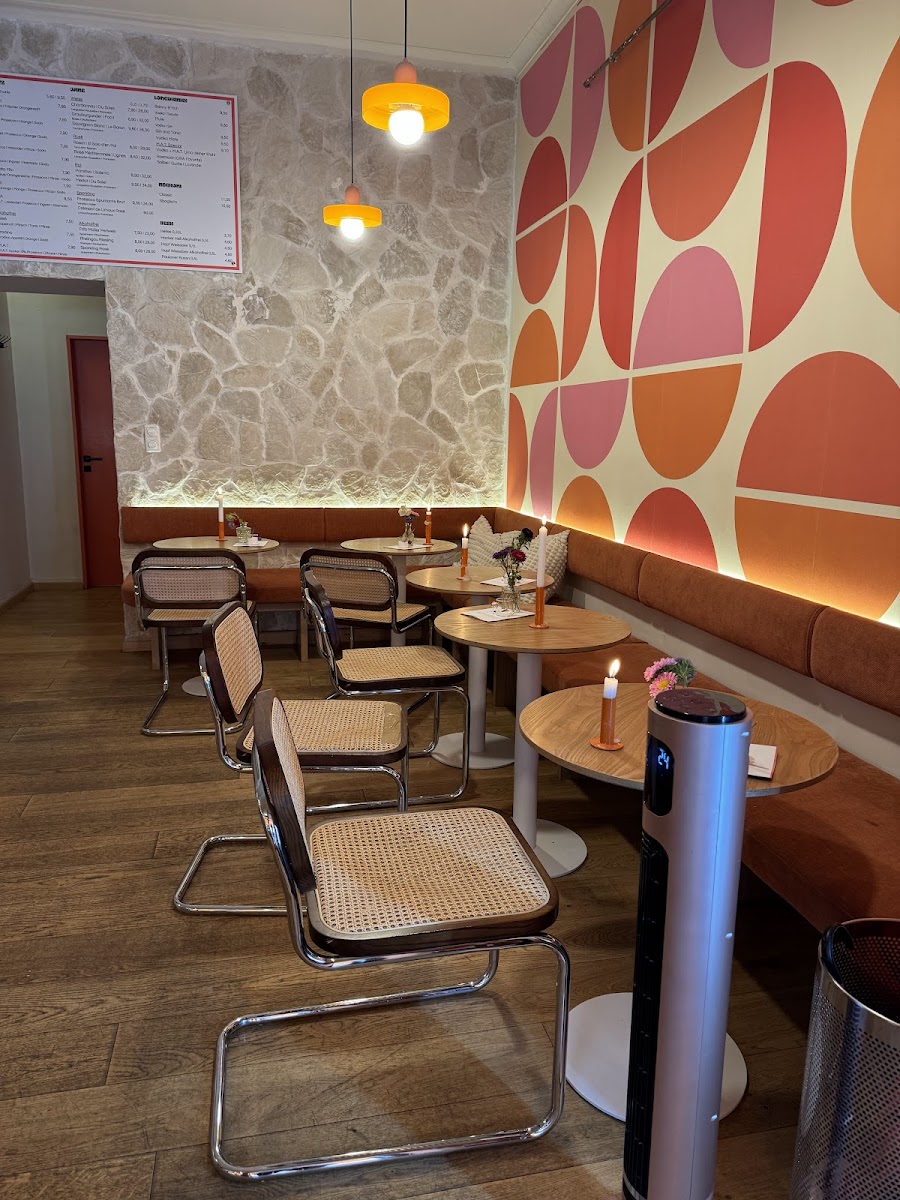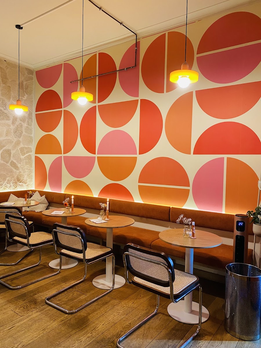 As you step inside, you'll be embraced by the café's unique retro charm that transports you to the vivid 1960s. With its pink-orange patterned wallpapers, warm lighting, and cool, simple furniture, ORA Tagesbar offers an inviting atmosphere that feels like a comfy time capsule. Whether you're seeking a cozy spot to unwind or a trendy place to meet friends, you’ll find your vibe here.