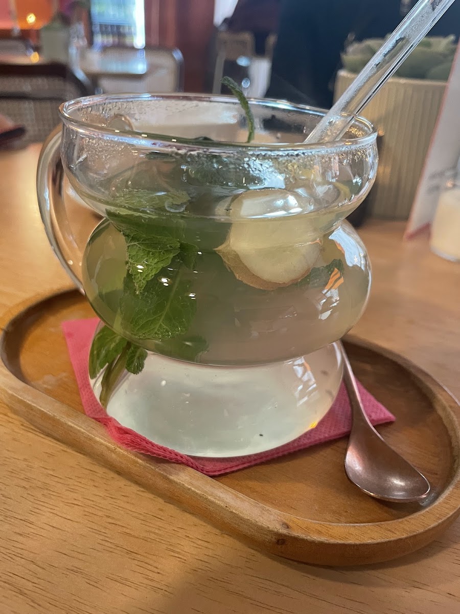 The café also has a warm customer service team, praised by visitors like Joe Alikhanov and Ari Emini, who recognized the great atmosphere and friendly encounters. You might find a little wait for a table on bustling weekends, as Deepak Jeswani noted his challenge in finding a seat outside on a Sunday afternoon. However, once you grab a spot, indulge in their enticing Mint Ingwer Tea, served in a fancy cup that adds a touch of elegance to your relaxation.